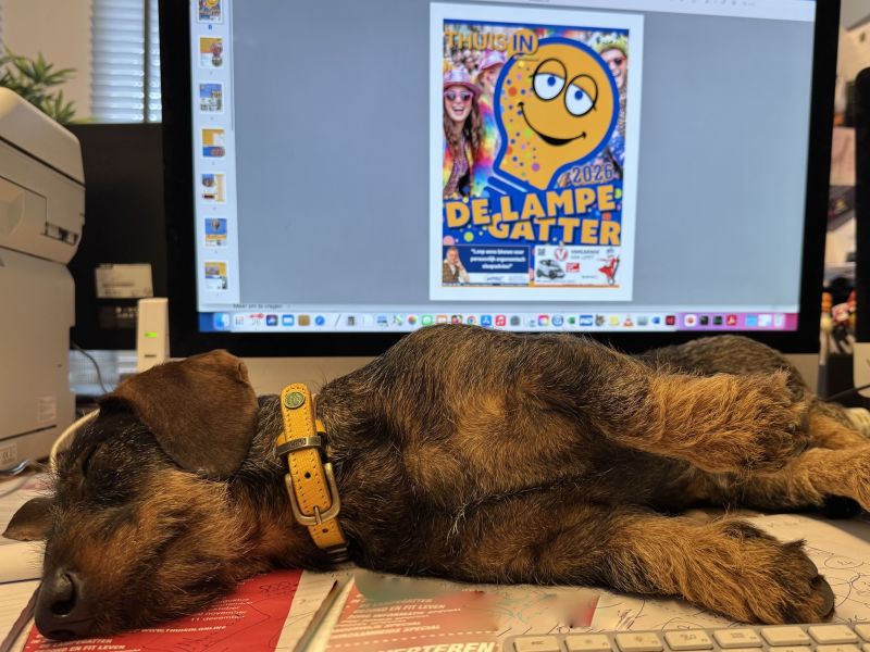 Hoi wereld,Gisteren was het bij ons topdrukte op kantoor. Zakelijk gezien, de carnavalseditie moest ter perse: Agenda vol, telefoons roodgloeiend, serieuze gezichten. Maar voor ondergetekende viervoet