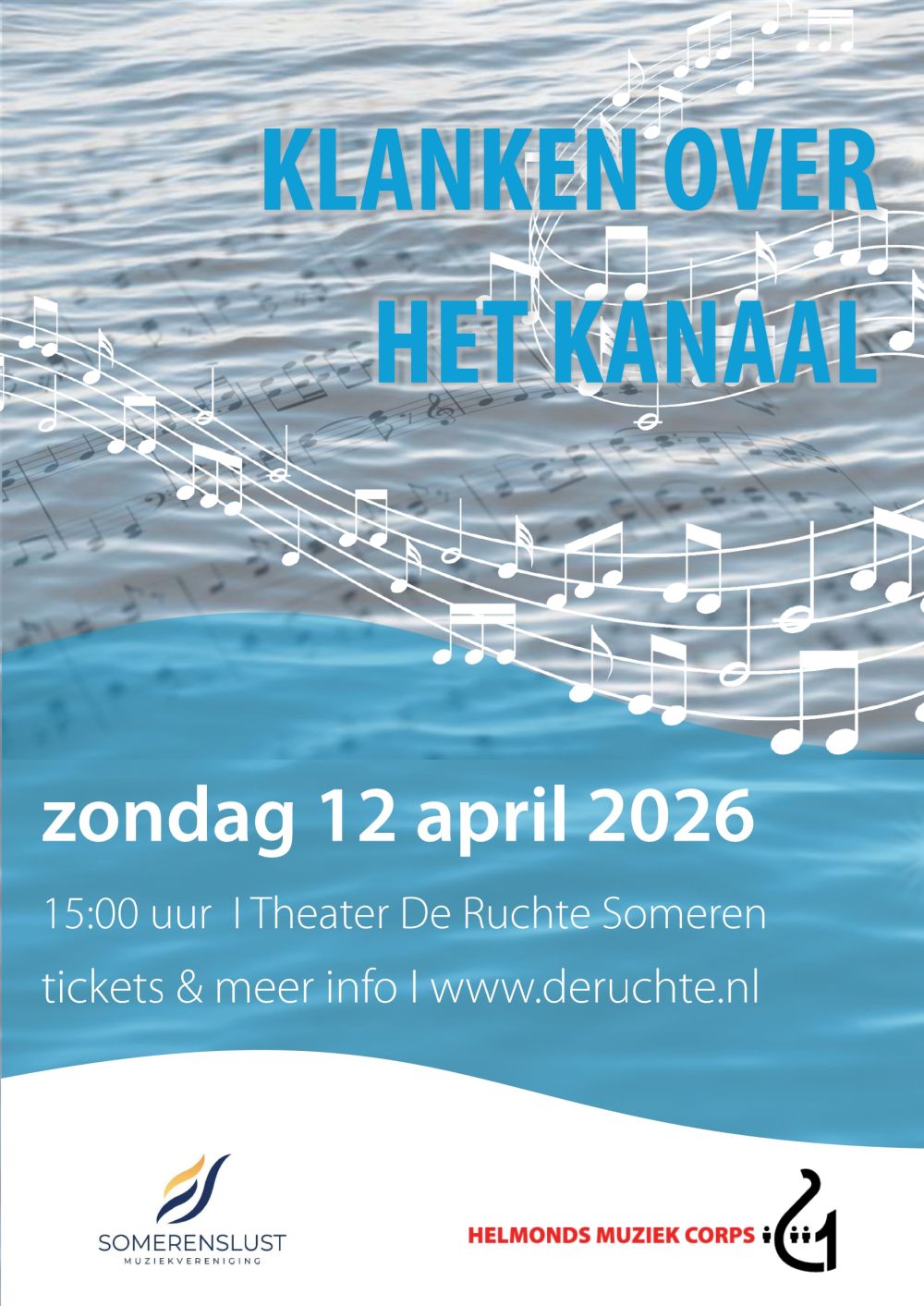 Muziekvereniging Somerens Lust en het harmonieorkest van het Helmonds Muziek Corps bundelen hun krachten voor een bijzonder concert: ‘Klanken over het kanaal’. Twee verenigingen allebei gelegen aan het kanaal, ieder met een eigen sound en repertoire, maar verbonden in muziek. Samen luiden zij het voorjaar in met een muzikale middag vol afwisseling en sfeer.