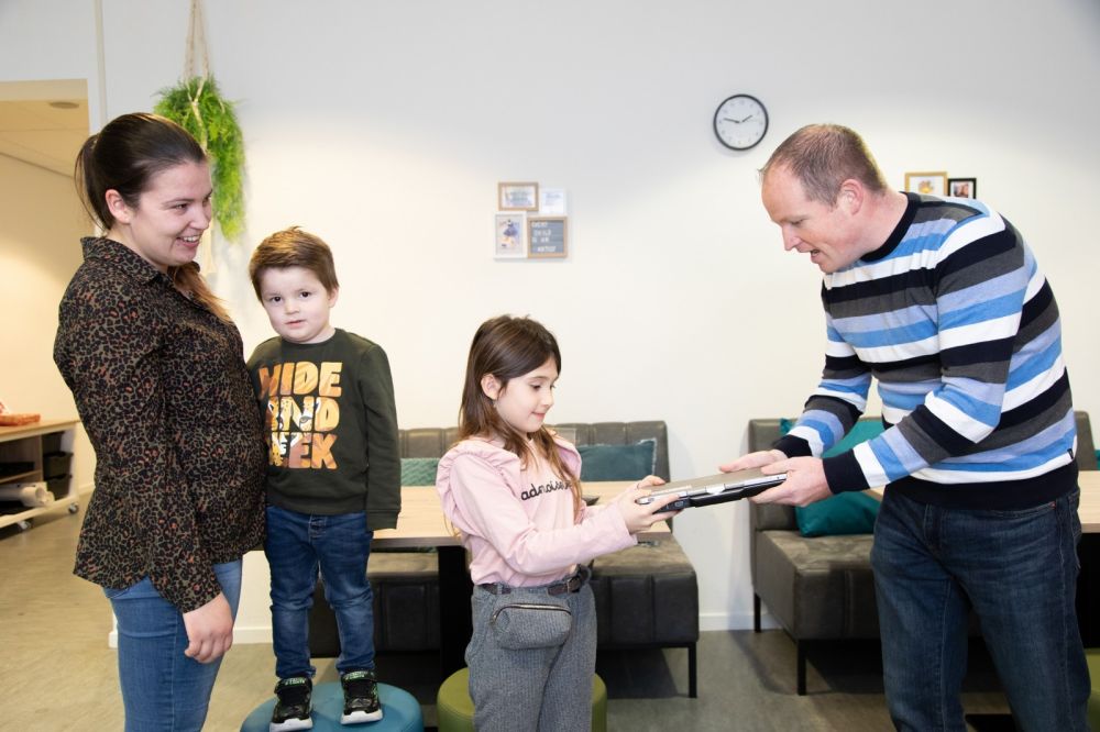 Elf leerlingen van Basisschool Fellenoord namen samen met hun ouders een laptop in ontvangst. Simone Verschuren is intern begeleider op Fellenoord: “In de tijd van corona kwamen we er echt achter dat niet ieder kind thuis een device heeft voor het schoolwerk. Toen we elf gezinnen mochten melden dat ze een laptop zouden ontvangen konden ze het niet geloven en waren er tranen van blijdschap.”