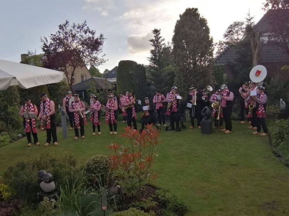 Maandagavond 17 mei: De blaaskapel zet in en de eerste noten klinken door de stille Burgemeester Pankenstraat. Eén voor één gaan de deuren open, zo ook bij de familie van Stiphout. De Mierlose blaaskapel heeft een verrassing in petto voor Christine van Stiphout. Zij werd bedankt voor haar inzet en de vele hand- en spandiensten die zij de afgelopen 25 jaar voor de Blaaskapel heeft gedaan. ,,Christine werd al de moeder van de Mierle-Tonnekes genoemd, maar omdat gisteren de Koningin jarig was, noemen we Christine voortaan de Koningin van de Mierle-Tonnekes”, aldus de voorzitter van de muzikanten. Christine hielp de Blaaskapel en de leden met het organiseren en verzorgen van feesten en bijeenkomsten. Ook hielp ze de secretaris van de club met de communicatie met de Duitse verenigingen en blaaskapellen.