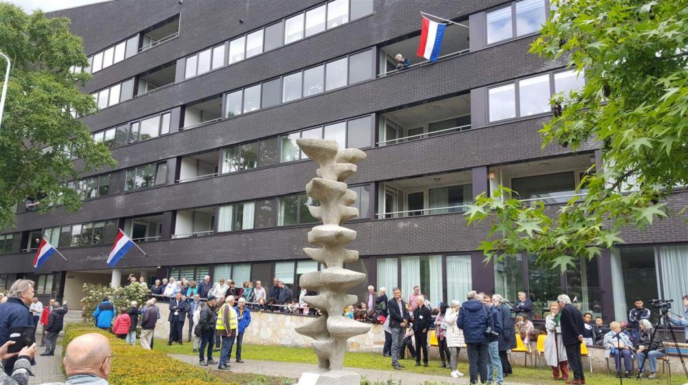 Op donderdag 9 mei jl. werd, tijdens een feestelijke bijeenkomst in de tuin van appartementencomplex Frankrijk Staete aan de Willem de Bruynstraat, het beeld ‘Vogels’ van Gerard Bruning her-onthuld.