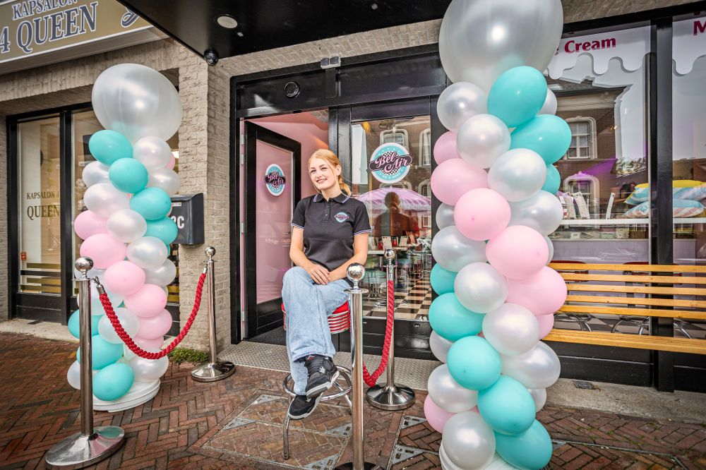 In 2024 heeft de Volkskrant het nummer: Watskeburt van de Jeugd van Tegenwoordig uitgeroepen tot het beste Nederlandse nummer aller tijden. 24 juni 2005 stond het nummer op 1 in de TOP 40. Laat dat nu ook precies de dag zijn dat Lieke ter wereld kwam. Of haar ouders toen al dachten: ‘wat is er gebeurd?’ weet ik niet. Inmiddels zijn ze er wel achter, in de meest positieve zin. Voor dit interview heb ik afgesproken in haar eigen zaak: Bel Air Ice & More in het centrum van dit mooie Geldrop. En dat is ook de plaats waar Lieke geboren en getogen is . Wat een creativiteit komt daar naar boven. Die creativiteit heeft ook wel voor wat wisselingen gezorgd in haar schoolverleden. Maar ja, dat heb je vaak met mensen die al sneller, verder of wat anders zijn. Die passen niet in een vast stramien. Na een paar scholen komt Lieke erachter dat haar passie ligt in het maken van connecties met mensen. Rond haar 14e had ze het idee om iets in de zorg, of met kinderen te gaan doen. Dat ‘met mensen’ past daar prima in. Maar bij een stage tijdens haar BBL opleiding in de horeca , werd het duidelijk voor haar dat het toch de horeca zou worden. En dan ook meteen voor zichzelf. Onderzoekend als Lieke is gaat ze op zoek naar trends. Tijdens die zoektocht stuit ze ook op het idee van een ijssalon met trendy producten. Daarnaast hoort ze wederom van mensen dat die een ijssalon missen in het centrum. Toen ze vorig jaar (2024) hoorde dat het pand waar ze nu zit vrij zou komen in verband met een verhuizing sloeg haar ondernemershart op hol. Binnen een paar dagen heeft ze het huurcontract geregeld en op 1 april 2024 krijgt ze de sleutel. Nou ja, krijgen. Daar hangt natuurlijk een huurprijs aan. Daarom gaan ze hard aan de slag, heeeeel hard. In twee dagen tijd heeft ze met veel bekenden het pand aan de binnenkant leeggehaald. Ze zegt daar zelf over : “Dat was lekker slopen, hard werken, maar ook heel gezellig!”. Haar droom, om de stijl van een oude Amerikaanse diner neer te zetten, maar daarnaast ook alles te bedenken, te bekijken, uit te voeren, aan te schaffen heeft best veel nachtrust gekost. Je kunt ook zeggen: slapeloze nachten. Ook de naam heeft best veel aandacht gekregen. ‘Rileys’ is nog een optie geweest. Zo heet haar 3 jarig Maltezer leeuwtje. Die mag niet mee naar de zaak omdat er geen honden binnen mogen. Terug naar Bel Air Ice & More. Dat: ‘ & More’ klopt helemaal. Ze heeft daar maar liefst 24 soorten ambachtelijk Italiaans ijs maar ook gebak, milkshakes en ik werd verwelkomd met een overheerlijke espresso met een mini ijsje Maar daarnaast speelt Lieke ook helemaal in op trends die ze volgt op internet. Omdat ze tussen 2020 en 2023 heel veel bezig is geweest op TikTok ( met zeg maar heeeeeel veeeel volgers) en Insta weet ze als de beste hoe ze nieuwe artikelen moet promoten. Eén van die nieuwe artikelen is een crumbl dupe cookie Zoals dat tegenwoordig heet, zijn die viral gegaan. Haar moeder bakt ze volgens eigen recept. Het mooiste wat ze daar over zegt is dat de koekjes die het zo goed doen in haar zaak : ‘echt wel het recept van mama’ zijn. Ze is echt heel trots op haar moeder. Hoe mooi kan het zijn als je samen met je ouders: ‘watskeburt’ waar kunt maken.
