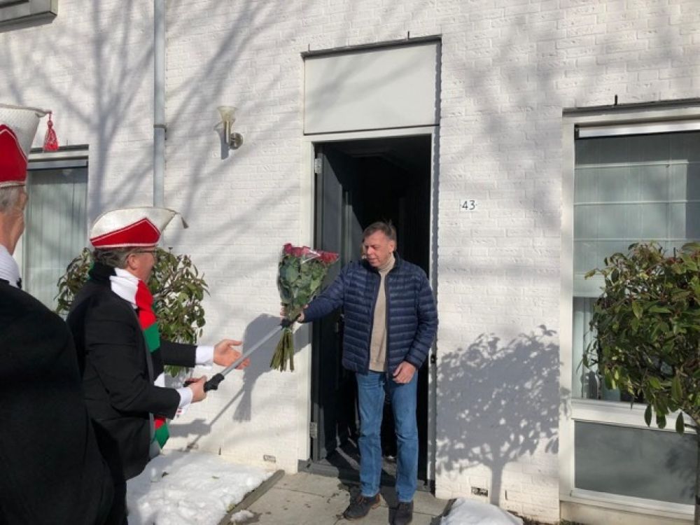 Dit jaar zijn de rozen op een bijzondere manier uitgereikt: aan de voordeur. De eer viel te beurt aan Jos Lenssen.