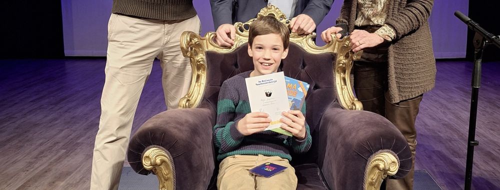 Vorige week vond de finale plaats van de Nationale Voorleeswedstrijd van Best. Leerlingen uit groep 7 en 8 van verschillende basisscholen lazen op hun allermooist voor. Hugo van basisschool De Kiezel mocht zich na afloop de winnaar noemen.