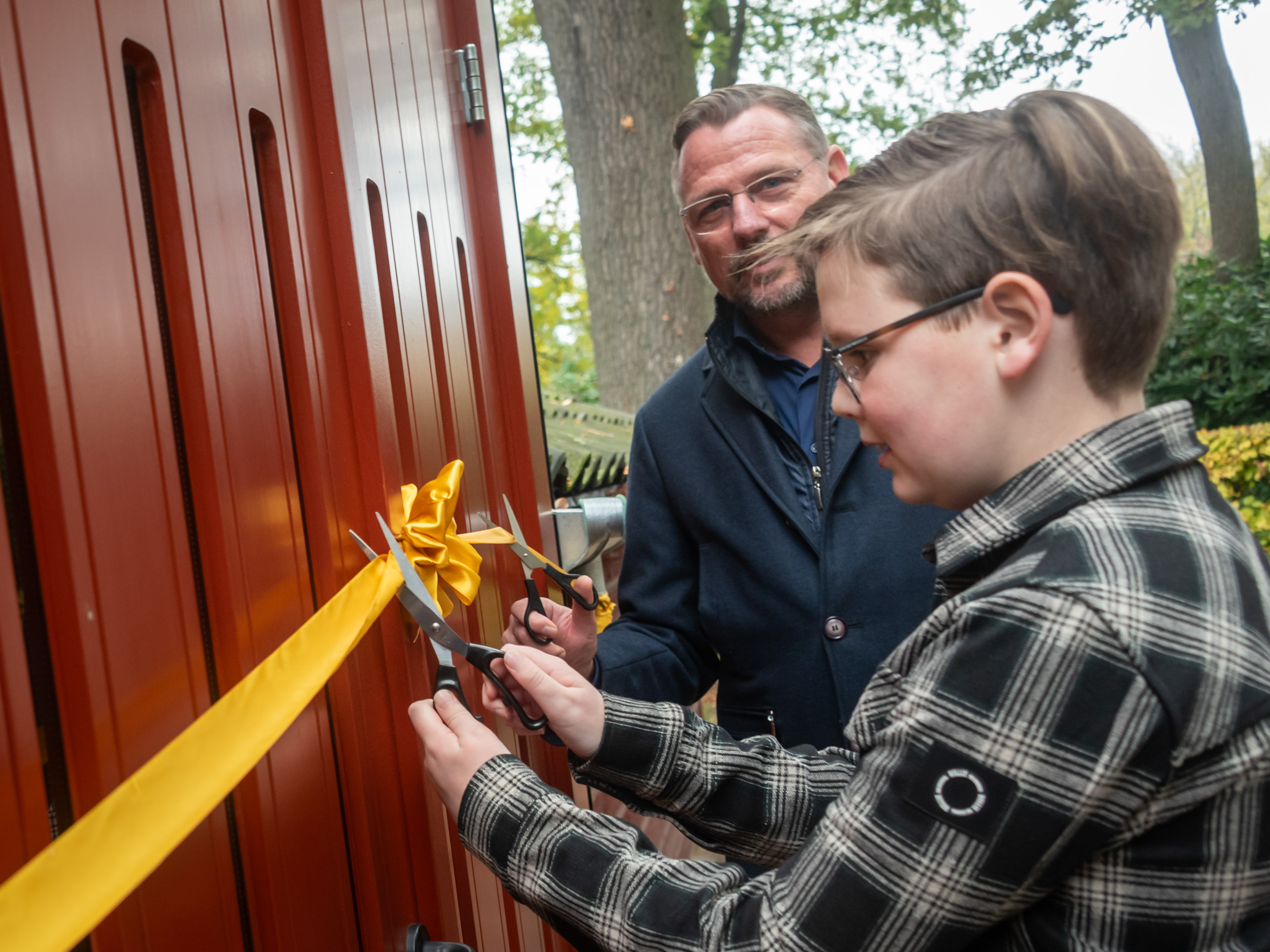 De burgemeester, de kinderburgemeester, sponsoren, bestuur, betrokkenen, media en natuurlijk de vrijwilligers waren aanwezig. Ambassadeur van het landgoed, Pieter van den Hoogenband, had een filmpje ingestuurd om bij de opening af te spelen. Het lint op de nieuwe voordeur werd doorgeknipt en binnen in het gebouw was de sponsorboom te zien.