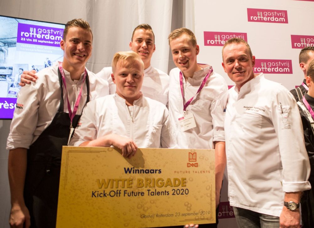 EINDHOVEN/ROTTERDAM - Vier studenten van mbo Horeca Eindhoven van De Rooi Pannen zijn gisteren uitgeroepen tot winnende (witte) brigade bij de kick-off van Future Talents 2020 in Rotterdam. Frank Daris, Ron Daris, Rob Verhees en Mike Kersten waren de concurrentie de baas.
