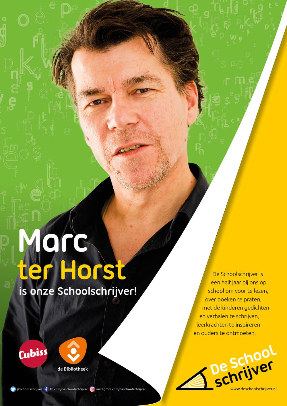 Marc ter Horst is eigenaar van tekstbureau ‘Rake taal’ en schreef onder andere de kinderboeken ‘Hé Aardbewoner’, ‘Van oerknal tot robot’ en ‘Palmen op de Noordpool’. Ter Horst: “Als schoolschrijver ga ik van alles lezen en schrijven met de kinderen. Maar ik ben niet van plan om allemaal schrijvertjes van ze te maken. Een beetje meer lezer zou al mooi zijn. Het belangrijkste is dat ze zich thuis voelen in taal, niet bang zijn om te lezen en te schrijven. Daar hebben ze de rest van hun leven profijt van.”
