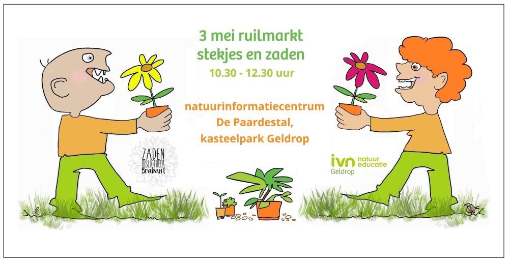 Zakjes met gedroogde zaden, stekjes van kamer- en tuinplanten, moestuin(kiem)planten: je mag ze allemaal meebrengen. Je ruilt naar eigen inzicht met een ander plantje of een zakje zaden. Alles is gratis. Onder het genot van een kop koffie of thee kun je meteen inzichten en tips uitwisselen met andere plantenliefhebbers. Aanmelden niet nodig. Leuk als je er bij bent! We hopen op een lekker zonnetje.