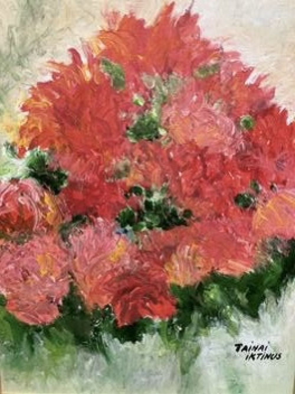 Tiny van Rooij noemt zichzelf als kunstenaar Tainai Iktinus en was in zijn werkzame leven aannemer. In 1970 besluit Tiny na een burn-out en diverse operaties om meer voor zichzelf te doen. Dat werd schilderen. Dat liep dat zo uit de hand dat hij nu misschien wel een 1000 schilderijen en tekeningen in zijn atelier heeft. Het is dan ook een prachtig groot atelier waarin hij ook andere kunstenaars uitnodigt om bij hem te komen werken.