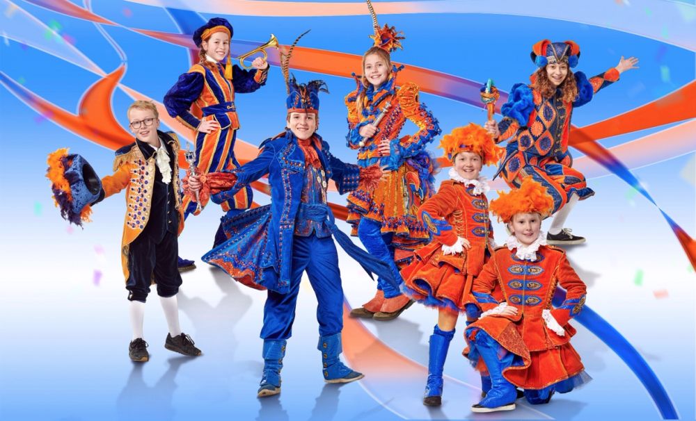 Foto: Rens van Mierlo (vlnr: Lakei Guus-Pieter Brogtrop, Heraut Lot Janssens, Markies Roel Beks, Markiezin Madelief Janssen, Dansmariekes L. Diede Waasdorp en R. Roxan Swinkels, Nar Mallisha Dijkstra)