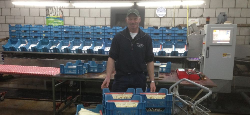 Na het interview laat hij zien hoe de asperges gewassen, gesorteerd en geschild worden. Een meter verderop worden ze verkocht aan de balie. John kijkt ze allemaal na. “Ik wil ze wel goed hebben natuurlijk.” Als de reacties geloofd mogen worden is dat zeker het geval.