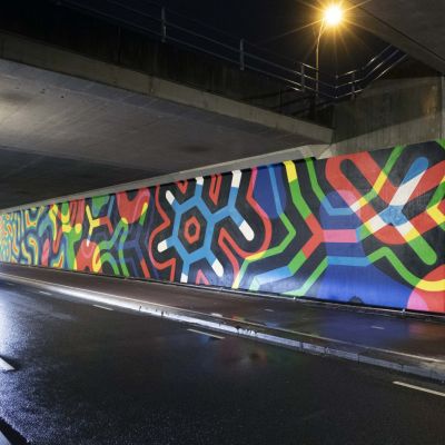 Afgelopen weken is het viaduct aan de Welschapsedijk omgetoverd tot een lichtkunstwerk. De wanden van het viaduct zijn voorzien van een grafisch ontwerp dat door gekleurd licht tot leven komt. Ontwerp Het Amsterdams-Eindhovens collectief Motion Paintings liet zich voor dit werk inspireren doo