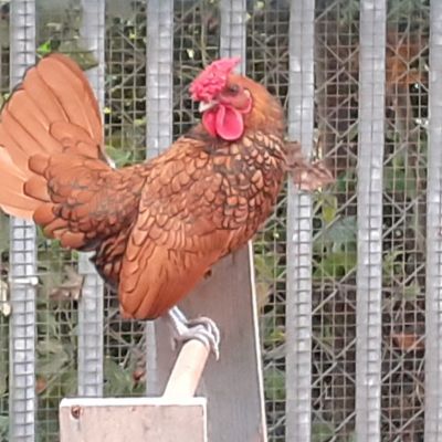 Dit is Rocky, een van de twee krielhanen die, samen met zijn tweelingbroer Tokkie, bij ons zwervend binnen is gekomen. Rocky is vriendelijk en nieuwsgierig en zoekt een nieuwe plek waar hij fijn met andere kippen een goed leven kan hebben. Misschien mag zijn broer Tokkie dan ook wel meeverhuizen?! H