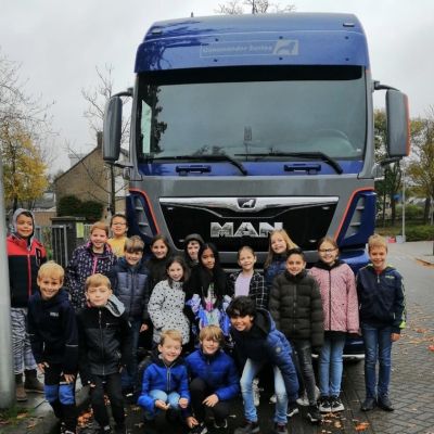 Om kinderen bewust te maken van de mogelijke gevaren van grote voertuigen in het verkeer verzorgen Transport en Logistiek Nederland (TLN) en Veilig Verkeer Nederland (VVN) een speciaal lesprogramma ‘Veilig op Weg’ voor leerlingen van de basisschool. Vrijdag 30 oktober gaf vrachtwagenchauffeur e