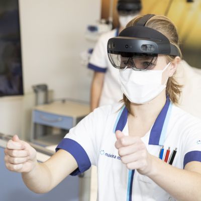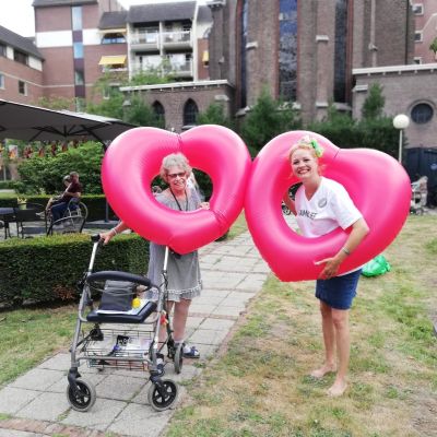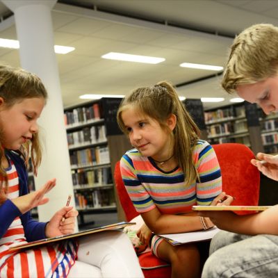 ‘Wie doet er mee politie en boefje? Alle boeven bij de fietsenstalling en alle politieagenten hier!’ Een vrij stevige kleuter springt op de pingpongtafel en wacht geduldig tot zijn klasgenoten een kant hebben gekozen. ‘Drie, twee, één, vangen!’ De p