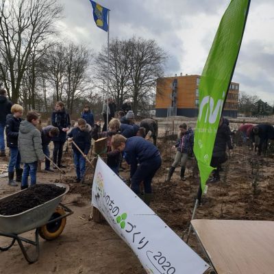 100 leerlingen van KC de Boog, buurtbewoners en natuurorganisatie IVN planten samen op 17 februari een Tiny Forest aan in Eindhoven. De kinderen van de basisschool mochten zelf de naam verzinnen, het werd: “Het BoogBos”. Wethouder Rik Thijs onthulde deze ochtend het naambord met enkele kinderen.&nbs
