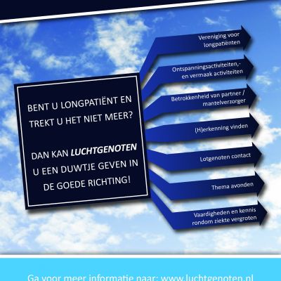 Luchtgenoten is een vereniging door en voor longpatienten. Wij organiseren contact-en themabijeenkomsten voor patiënten + hun partner met een longaandoening. Het bestuur van Luchtgenoten heeft onze vereniging ook aangemeld bij de RABO ClubSupport. Dit is een initiatief van de Ra
