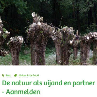 Tijd : donderdag 17 februari om 13.30 uur start : Bij Ons Spoordonk, Langendonksedijk 5, Oirschot kosten : gratis voor IVN-leden en € 2,50 voor niet-leden aanmelden via de website (www.ivn.nl/Best) Met de beleef-de-seizoenen wandelingen nemen de gidsen u mee naar een specifiek gebied.